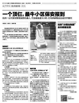6月29日,浙江亚博机器人技术有限公司发布新款“智能安防机器人”,目前已经和杭州多家物业达成合作意向。最快下半年,他就要出现在杭州某个高档小区里了。